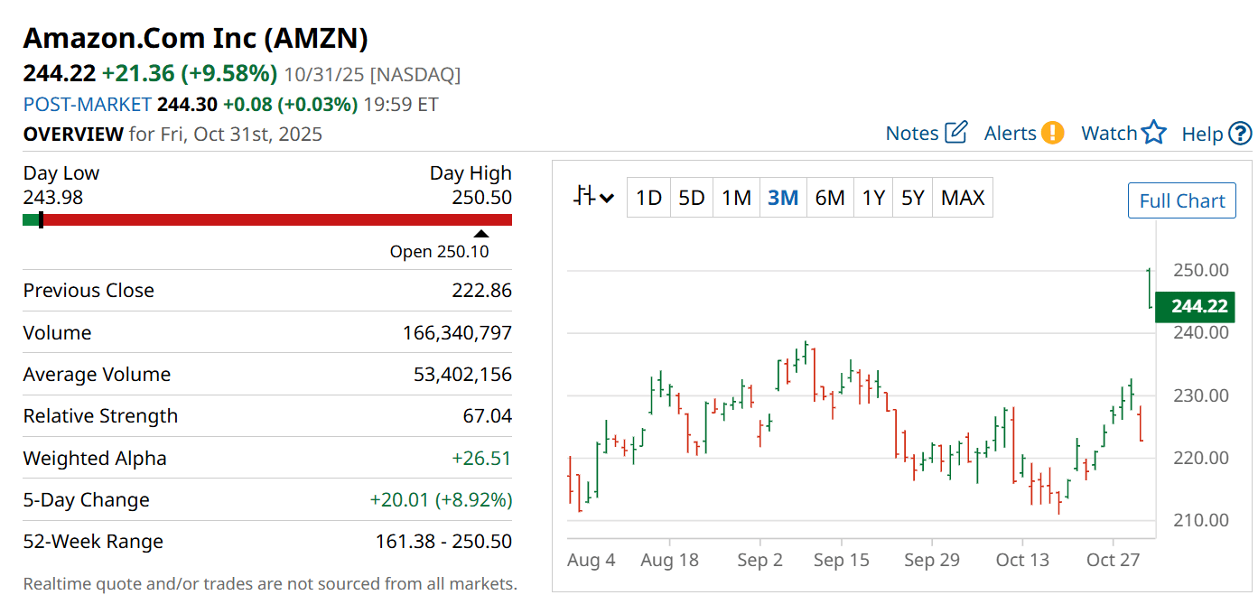 Amazon (NASDAQ: AMZN) just surged nearly 10% to a fresh all-time high.